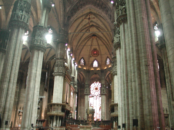 哥特风之前流行的罗马风,一般是砖砌结构米兰大教堂攻略,墙体修得厚重敦实,窗户小得可怜,而哥特风将承重结构变成框架后,几个大立柱加上其他力学设计,巧妙解决了承重问题,于是释放了大量墙体面积,这些墙体就做彩绘玻璃花窗了。但副产品是:画壁画的失业了,做玻璃的发财了。威尼斯玻璃业的繁荣一定意义上和哥特式的盛行有关。