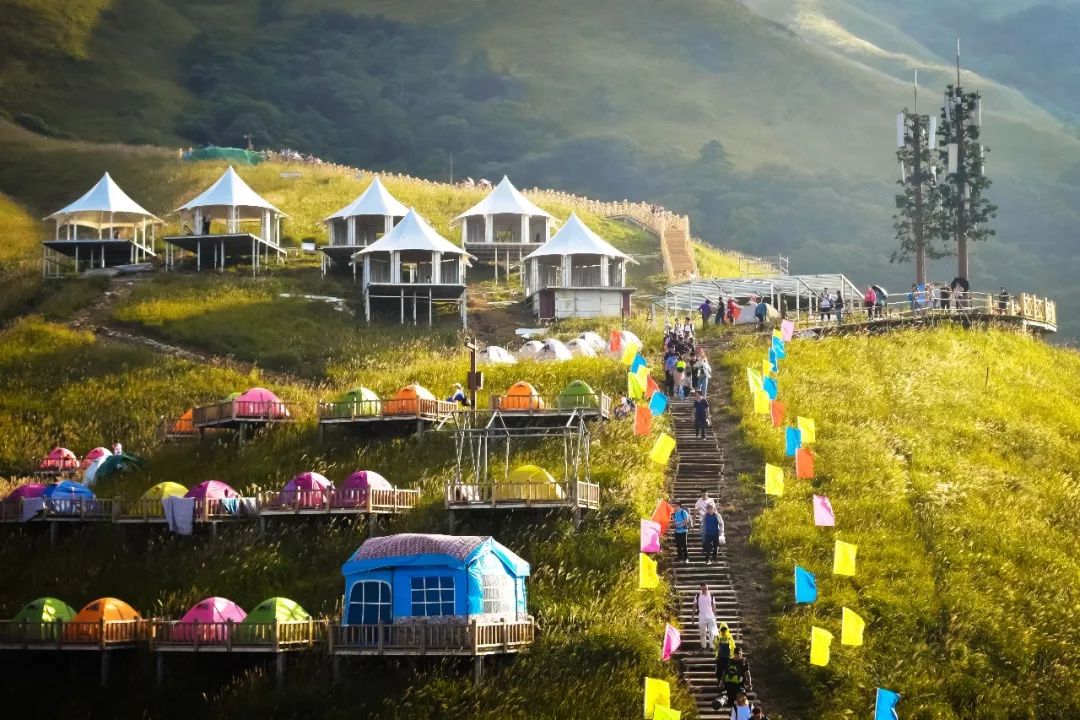提前预订好帐篷,到山上找到位置可以直接入住,商家会搭好。预订帐篷也可在“以武慧游”公众号预订哦