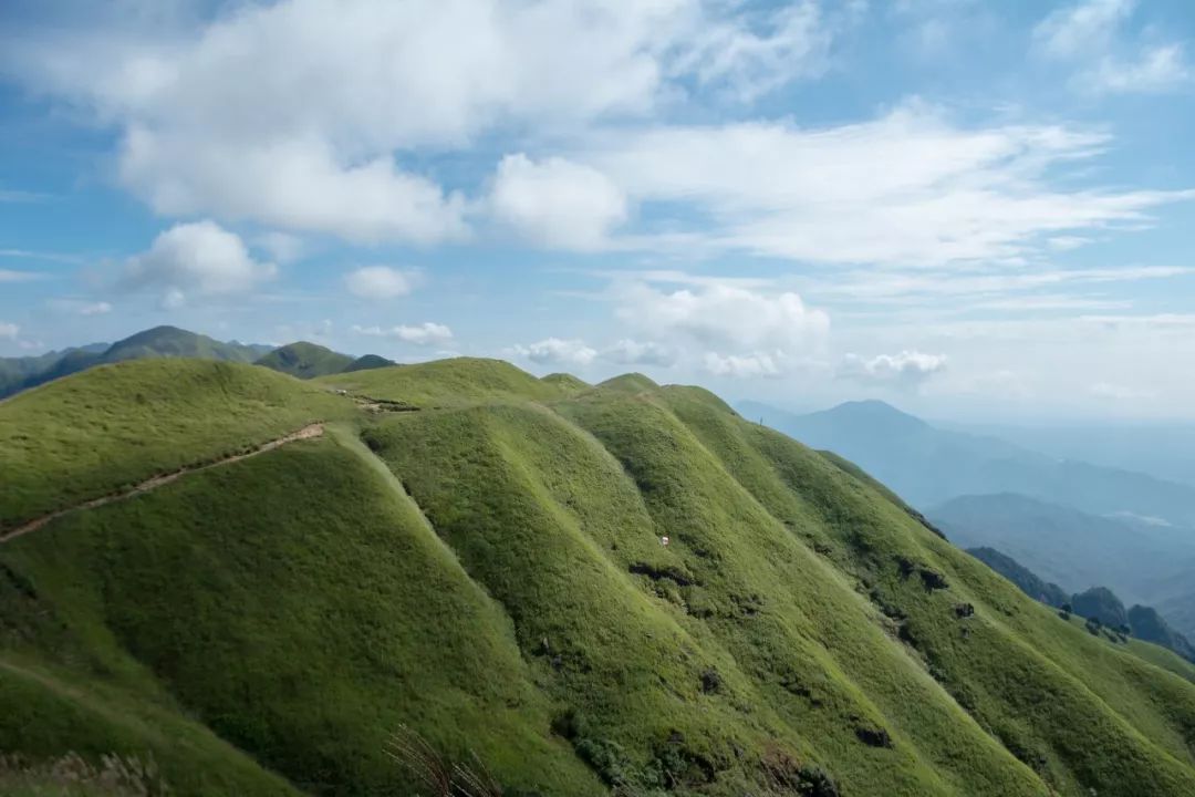还记得抖音刷得最多的武功山风景吗?没错就是这个地方,位于白鹤峰下来一点,站在高处,十万亩草甸就在眼前。