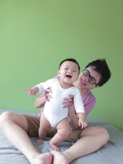 宝爸不断地托举宝宝,宝宝也会觉得好玩,并