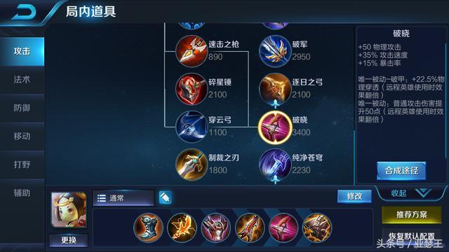 5、破晓:射手的后期神器,具备全面属性的装备。到这时候敌方坦克的防御已经很高了王者荣耀鲁班攻略,必须提高自身的物理穿透才可以打出伤害。