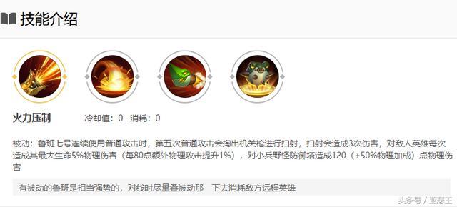 看下图,鲁班的被动是以百分比作为计量的,并且扫射是可以暴击的!这是鲁班走暴击路线的关键。因此走暴击路线的鲁班只要确保两个因素即可,一是暴击率,二是暴击效果。上面推荐的铭文和出装,已经满足这两个因素。