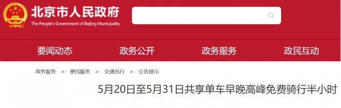 5月20日消息, 记者从首都之窗了解到,为适应疫情防控进入常态化阶段和全面复工复产的新形势,鼓励、培育市民通过骑行+公共交通的方式通勤免费骑共享单车攻略,北京市交通委联合美团、青桔、哈啰等共享单车企业,推出早晚高峰时段免费骑行半小时共享单车的激励措施,鼓励市民绿色出行。