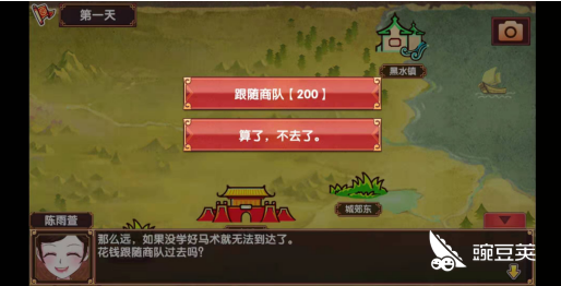 2、在同年的十月份(剧情触发后第二个日程安排),安排女儿前往黑水镇冒险。马术课程没达标则无法自由前往该地区,只能花费200金钱跟随商队前往,且商队有可能遭遇马贼,容易导致剧情触发失败。建议大家在九月时存个档,以免冒险途中遇到特殊情况。