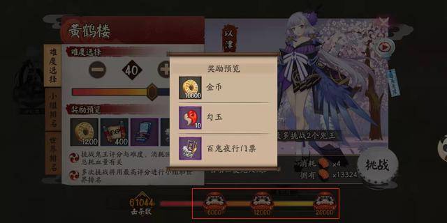 一个地域鬼王如果在一天被玩家挑战6000次、12000次、20000次,还会有额外的勾玉奖励,一共是20勾玉。如果说你的威望达到了1000点,每天可以挑战3个地域鬼王,那么就有60勾玉可以拿,加上每周分享的20勾玉,只在这个副本里,我们每周就可以收获到440勾玉。