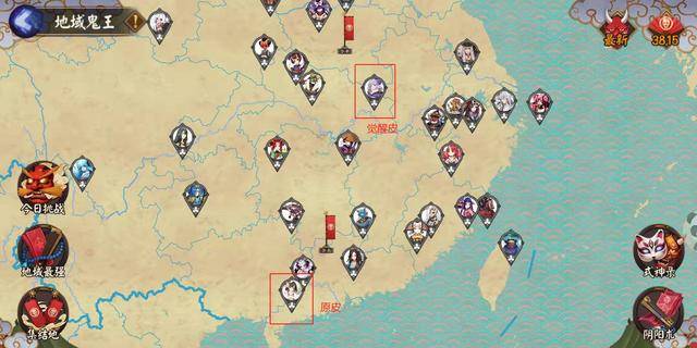 之所以是叫"地域鬼王",只因为这个副本的地图是用的世界地图,所有的鬼王分布在世界各地。《阴阳师》是有定位系统的,一开始我们挑战的鬼王就是玩家自己所在的位置,挑战鬼王的范围需要通过"声望"来解锁的。初始的声望值是300点,也就是说以我们所在的位置为圆心,300km为半径画圆,这个圆里存在的鬼王就是我们能够挑战的。