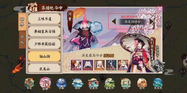 每一个地域鬼王都有随机的挑战条件,比如限定在具体回合数内击杀、限定某位阴阳师出战、限定式神种类、降低治疗量等等,这些限制每天都会随机出现。尤其是限定式神种类最让人头疼,有时候会让必须上一个白蛋、必须有2个R卡、必须都是飞行系式神等等,这类的鬼王可以暂时先放弃,等它下次刷新挑战条件。