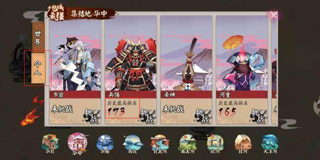 之前的游戏设定还未完善,很多人不记得自己打过哪些鬼王,不记得自己有没有征服该鬼王,现在我们的良心策划出了新的功能,可以让你查到自己再每一个鬼王那里的征战最高记录。在界面的"地域最强"里,点击"个人"就可以看到了,不会再浪费你的挑战机会。