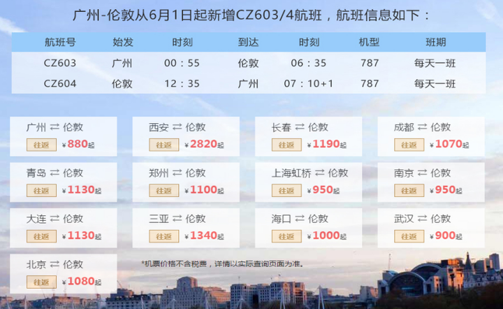 各家公司都会不定期地推出各种各样的目的地促销,集中推广某个目的地,比如南航最近在大力推广伦敦航线,官网就放出了这样的价格: