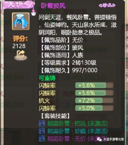 幻影:把玩属性足够,要的是把玩效果的 30 闪躲率