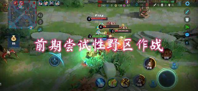 前期打野选择入侵野区,我们了解到打野的想法后,直接快速抢线,配合队友入侵野区,虽然兰陵王刷线被敌方集火击杀,但是我们并不慌张,直接配合项羽先杀敌方打野,随后1-2-1配合普攻直接击杀敌方猪八戒,随后普攻减少一技能cd,再次释放1-2-1连招再杀程咬金,随后升级大招,直接大招收割掉残血小乔,直接将队伍的节奏稳定,将局面转为顺风。