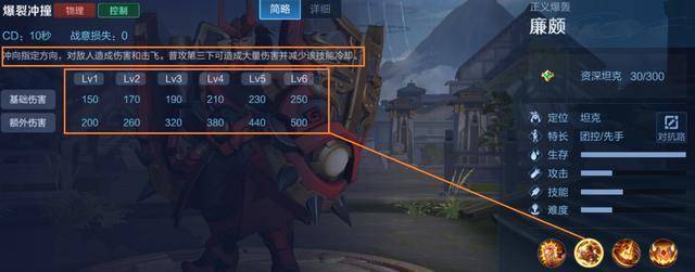 廉颇向指定方向发起冲锋,对敌人造成伤害并将其击飞。 被动:廉颇连续使用普攻时,第三次普攻会变成直拳重击,对敌人造成额外伤害,并减少爆裂冲撞的冷却时间。