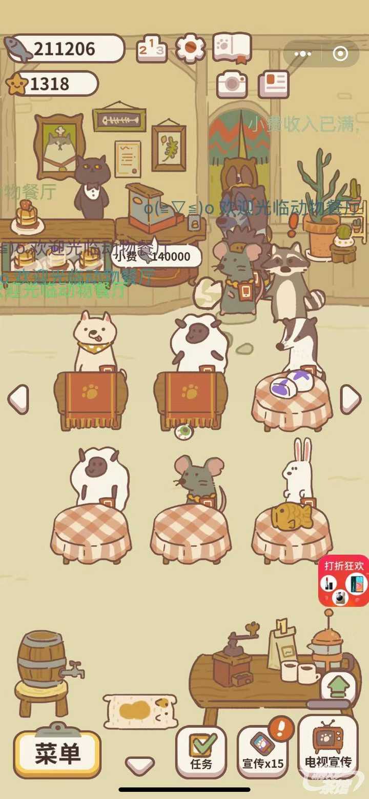 第二款微信创意小游戏上的爆款产品,就是主打宠物题材的模拟经营小游戏《动物餐厅》,这款由4人研发团队推出的产品,目前累计获得1亿用户的体验,最高月流水达到了5000万元。
