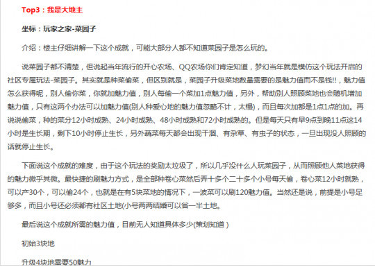 看了“我是大地主”的相关成就介绍,这个成就要升级12块土地需要每天重复做很繁琐的事情,时间还很长,要是没毅力怕是很难完成。
