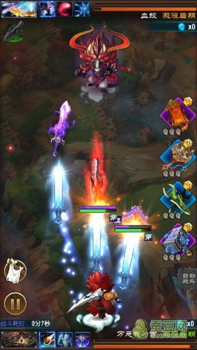 除了神通,游戏还有手动施法的选项,在打斗界面的右边,叫法宝,在战斗中每隔一段时间,就会给你一点战斗法力,三点战斗法力可以放一个法宝(当然,有些法宝有特殊说明,可以少消耗一点法力等等,这都是后期的事了,到时你就明白了)法宝就相当于强化版的神通。