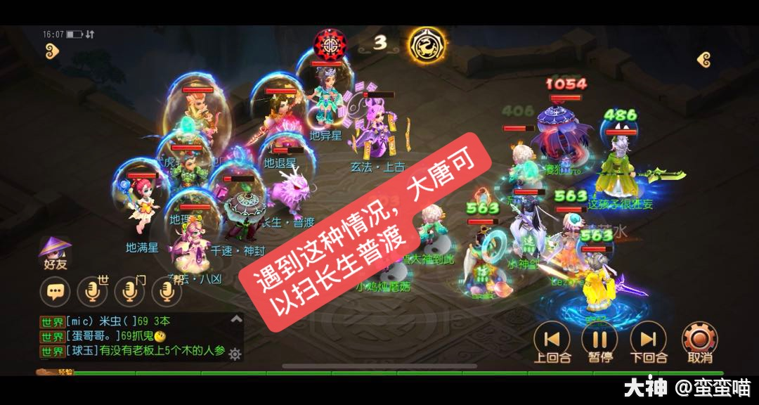 大唐这个门派很绿,经常扫前排触发高神,所以,除非队伍承受不住对面前排的法系,不建议扫羊和八凶。