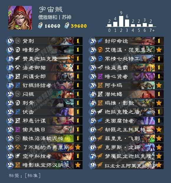 盗贼在近几个版本中凭借各式各样花里胡哨的配合玩法深得玩家们的心。"秀就完事了",这样的卡组即便是输了,也是意犹未尽。不过,卡组偏贵,适合购买卡牌收藏丰富或是粉尘足够的玩家们。