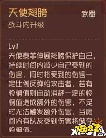 1级推荐:点出武器技能“天使翅膀”1级,在初期增加生存力,这时候队友还不会陷入危险之中。
