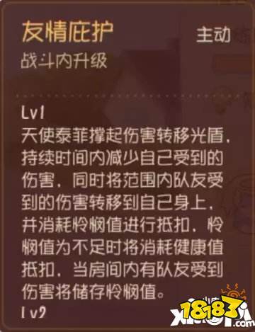 4级推荐:点出主动技能“友情庇护”2级,这时候的“天使泰菲”几乎成型