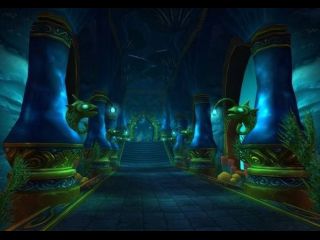 幽暗回廊:深渊之喉入口,一贴内部的走廊,两边海藻环绕.六根深蓝色的石柱坚固的插入海底尽显湍气派.艾萨拉的娜拉卫兵在此来回巡逻,伟唇军赋斯把守着走廊的尽头.