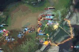 璐璐的团战中要注意大招的释放,一种方法是将大招套给己方的突进英雄,冲进去打乱对方的阵形,要么就用大招来保护后排,比如这一波青钢影切后排被璐璐大招挡住,然后用自己的技能不断的拉扯消耗,不要冲的太靠前,璐璐是比较脆的,这样风筝输出拿下三杀。