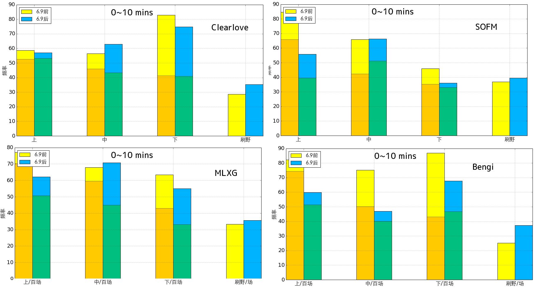 黄色代表:6.9 版本前分别在上中下3路gank平均值