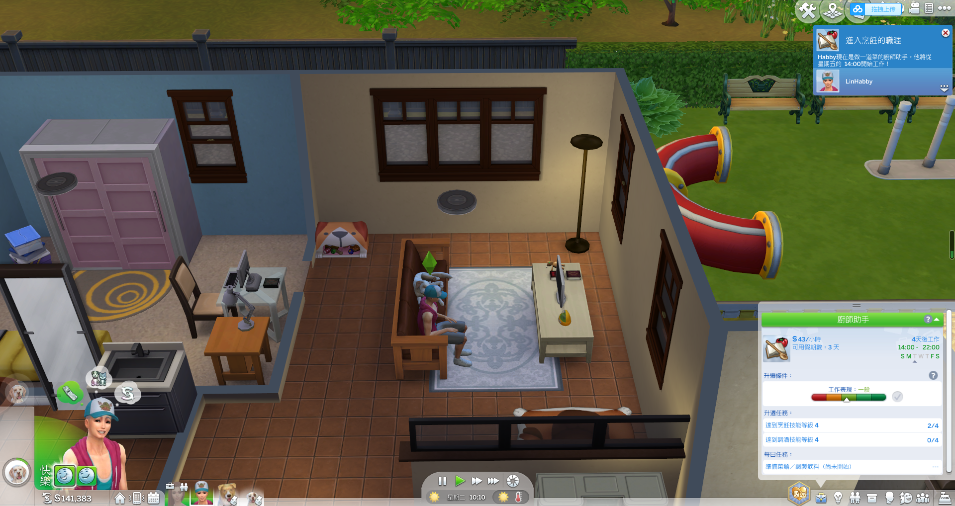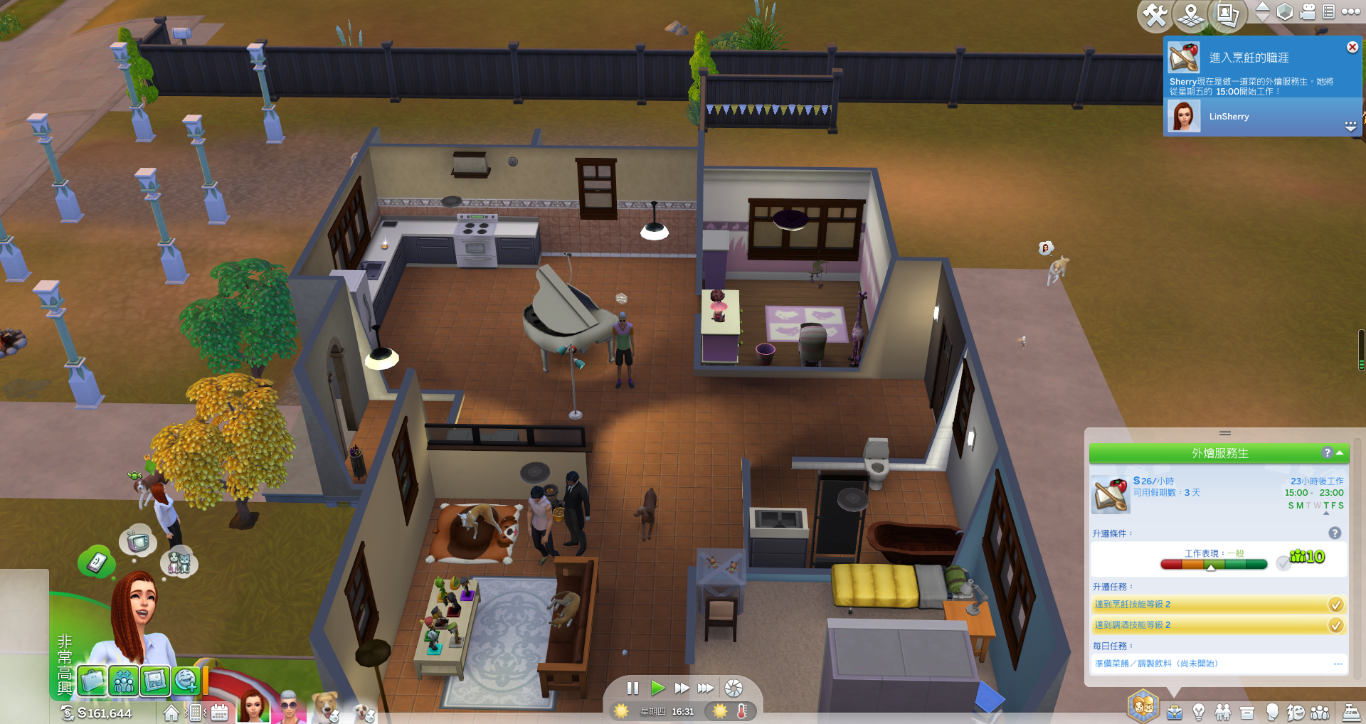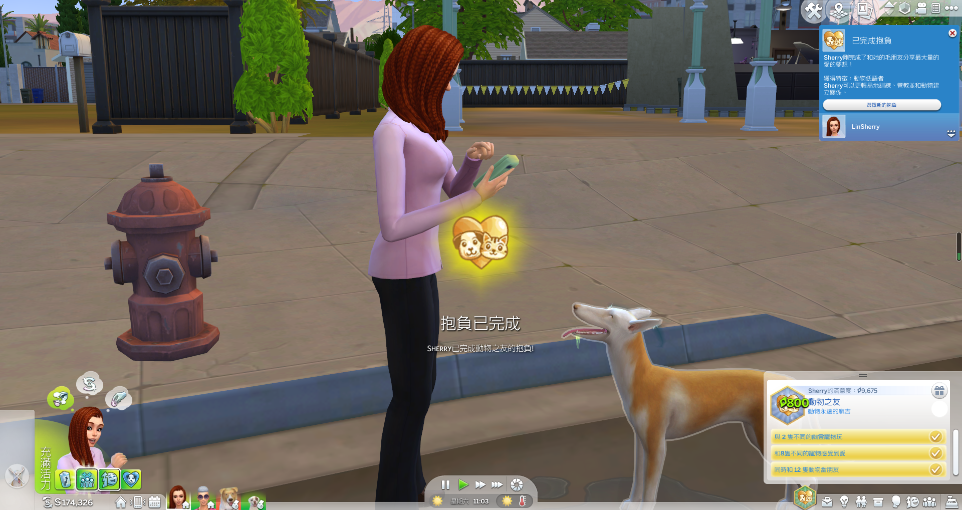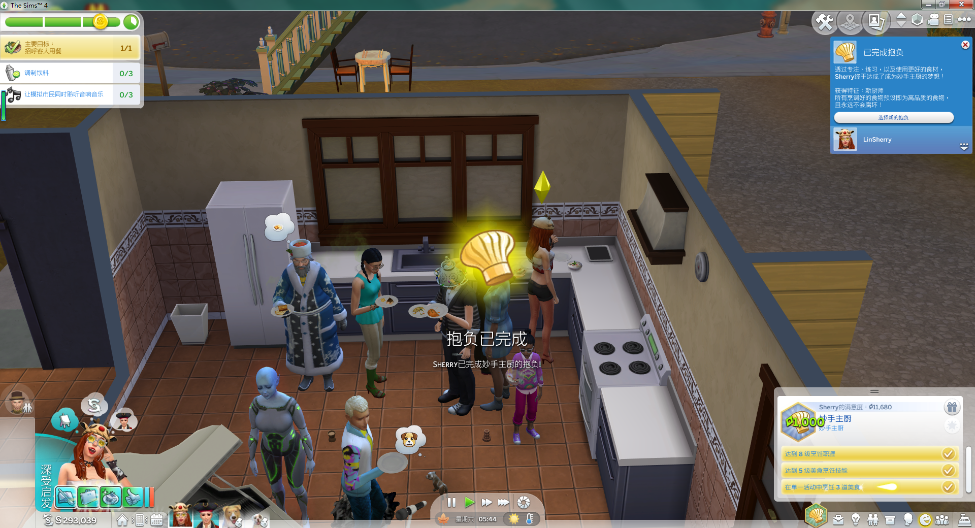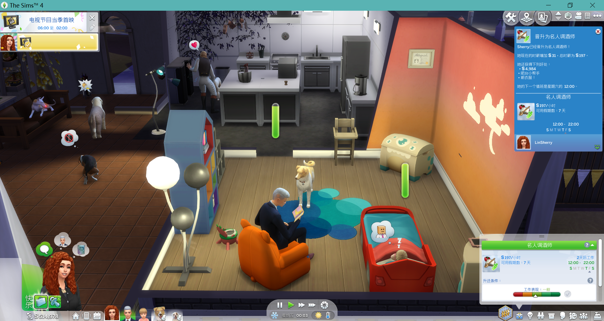 与人相比,和动物当朋友要简单的多模拟人生4职业,基本上几次互动就可以成为朋友了。而且Sherry有爱狗人特征,地段特征也是狗狗聚会,完成抱负也就更加事半功倍了。