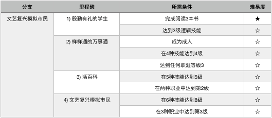Sherry已经完成了三个职业,顺便也就完成了文艺复兴模拟市民抱负。由于没有花费额外的时间,所以这个抱负除了第一个条件以外,其余的都是半颗星的难度~