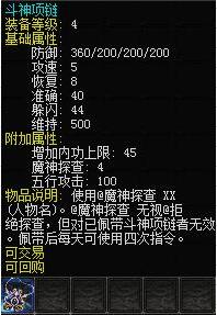 2件新装备属性强劲以外,斗神项链还首次开放每天四次侦查斗神项链,让您的对手无处遁形!