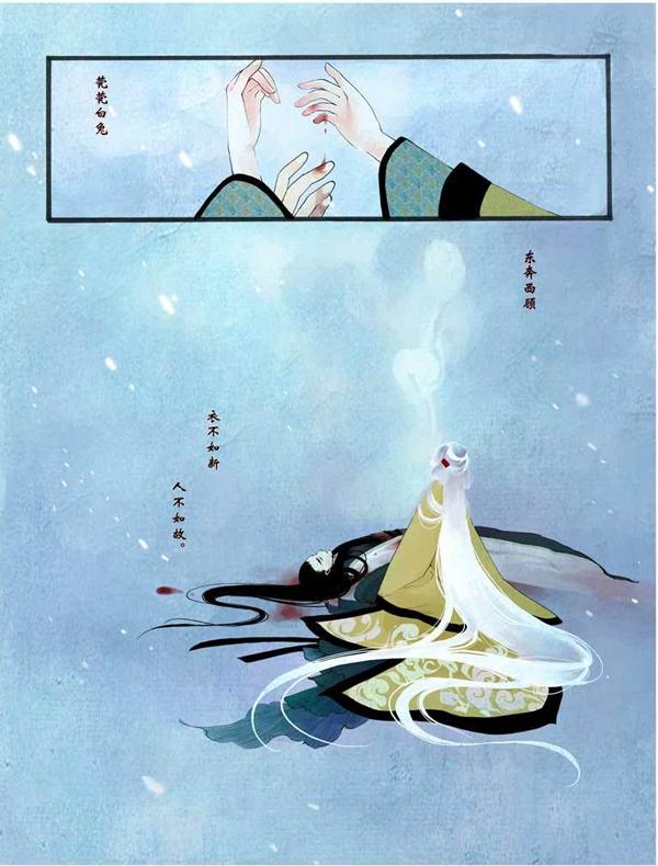 《茕兔》,全彩的短篇故事,色彩明艳亮丽,线条舒展灵动,意蕴悠长,哀怨婉转。