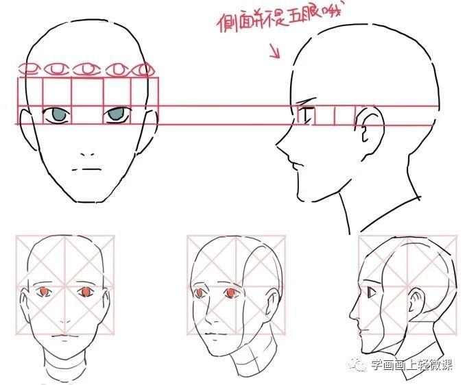 五眼:正面的头部宽度大约是在五个眼睛左右的距离,我在课程中有详细的说明这一点。
