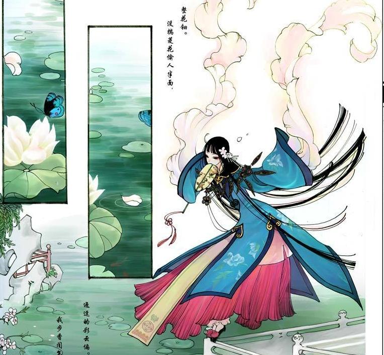 《游园惊梦》中,达叔大量采用中国工笔画的技法,全篇洋溢着浓浓的中国风,同样线条精致飘逸,色彩干净简练。说是用插画拼成一部漫画也毫不为过。