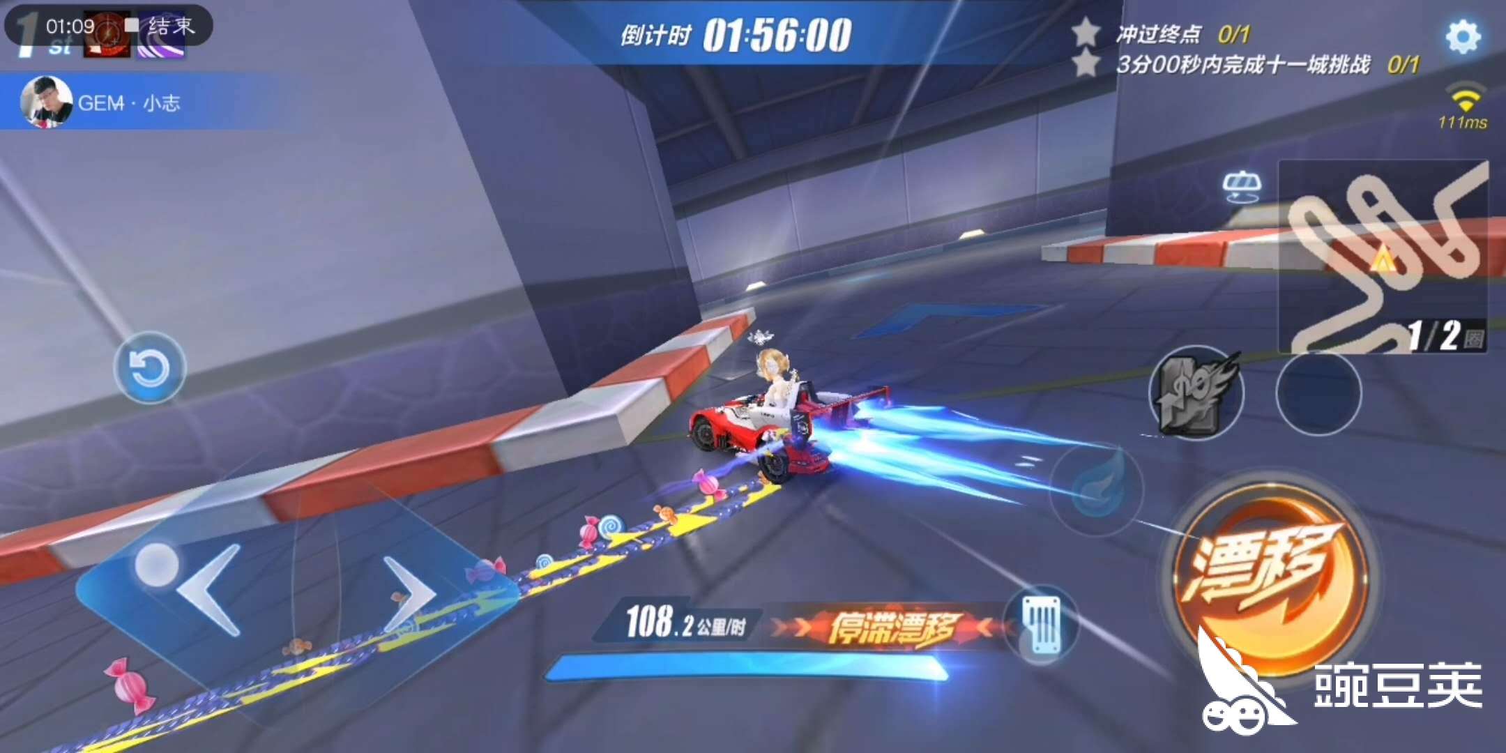 第二步:我们先超级起步然后衔接断位漂移加双喷,然后我们再来一遍断位漂移加双喷通过第一个弯道,注意的就是要控制好车子的方向,这里是很容易撞墙的,随后我们就是连续的弯道。在每一个弯道的地方都是用到断位漂移加cww喷,这样我们车速才是最高,就能替我们节省很多的时间,在每一个弯道处我们都要提前的漂移。