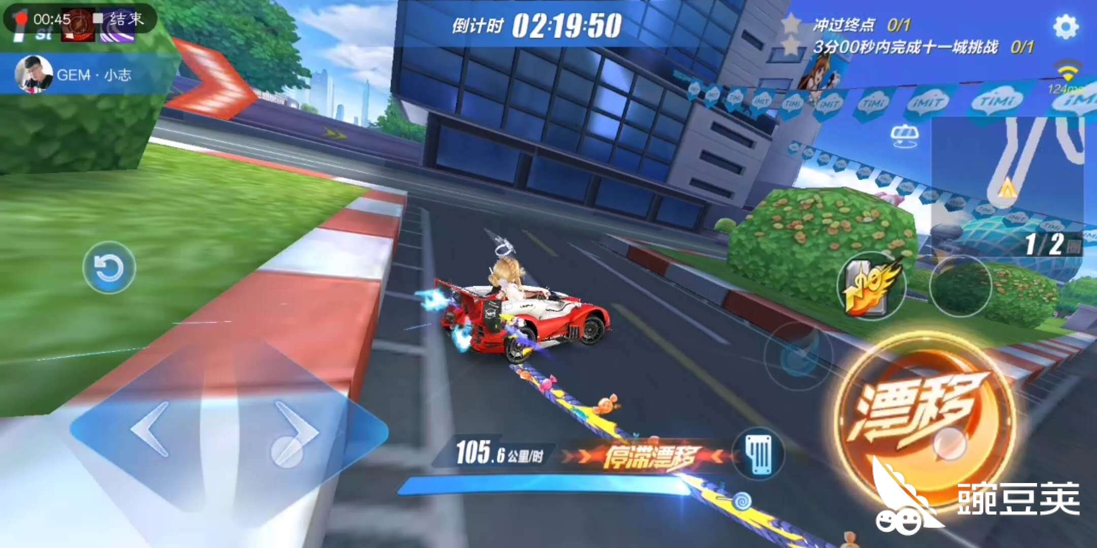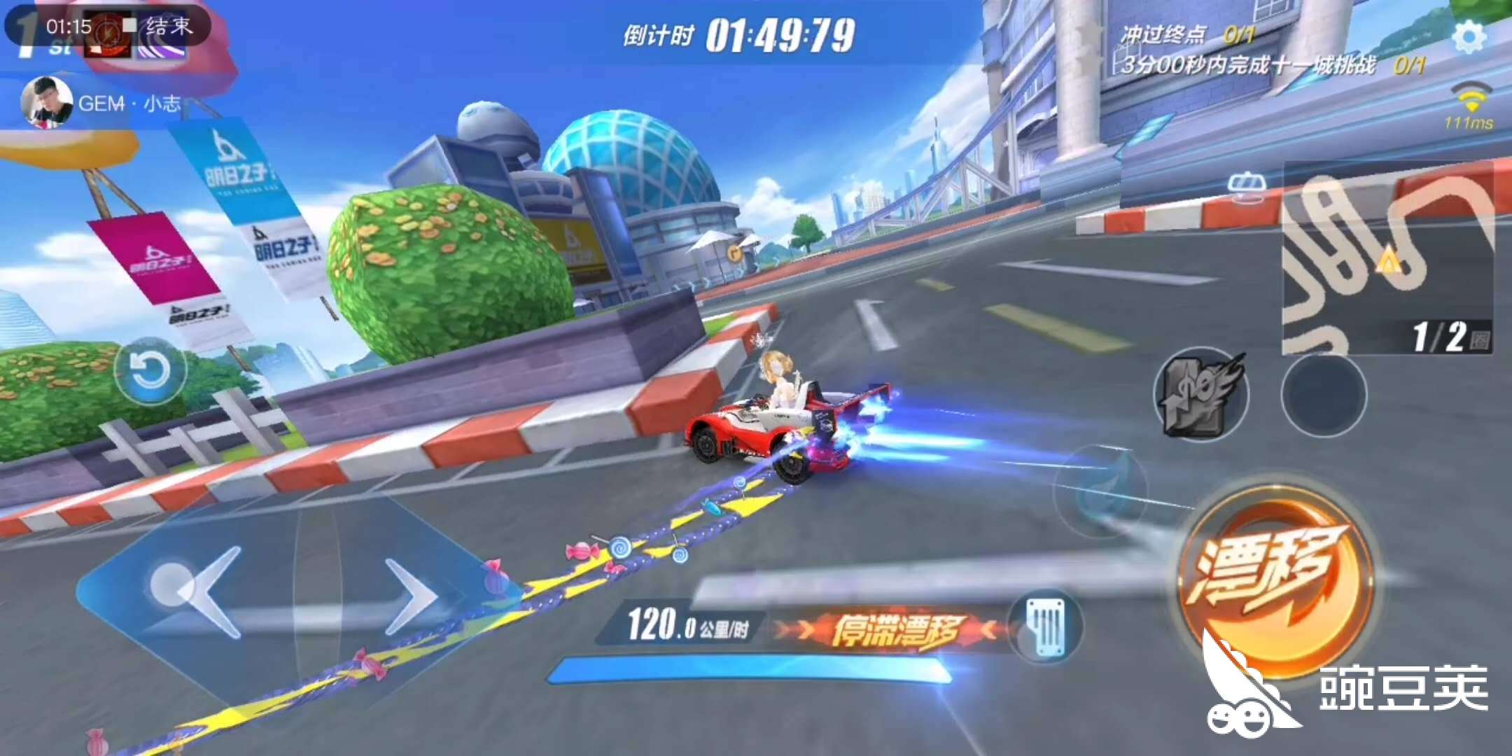 第三步:途中有几处近道,第一处近道就是照片上面,在这里一定要看准时机然后进行漂移如果说飘得太早那么我们就点一下刹车键,这个时候就能让大家避免撞墙。