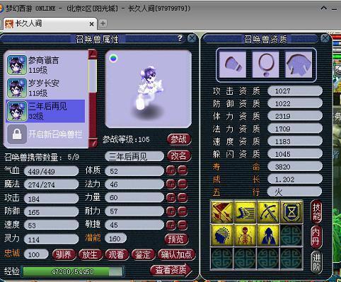 这只7技能的幽莹娃娃说实在的给小明一种非常喜庆的感觉,为什么这么说呢?尽管说资质看起来真的是毫无亮点,但是我们要知道,这只召唤兽是可以吃点元宵和炼兽之类的,之后多吃15个元宵左右就差不多了,可是现如今合出好胚子是很难的,而这只幽莹娃娃的名字则是给我们很明确的目标,也确实,如果花费三年时间培养的话,这只宝宝是很有潜力的。
