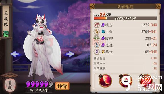 雪女之外,三尾狐也是大家比较爱用的式神。优秀的伤害和极高的暴击率让这位御姐成为了出色的攻击手。