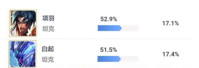 王者荣耀前几个版本真的成为了坦克荣耀,目前加强了射手和增加了破晓后,射手有活跃在了王者峡谷,但是坦克仍是不可缺少的存在,说道坦克大家肯定首先想到的是人形兵器白起,因为白起实在是太过于强大了,有肉有控有位移有伤害还有强大的回血功能,但是现在居然有一批黑马出现了,已经超过老牌坦克白起,那就是西楚霸王项羽。