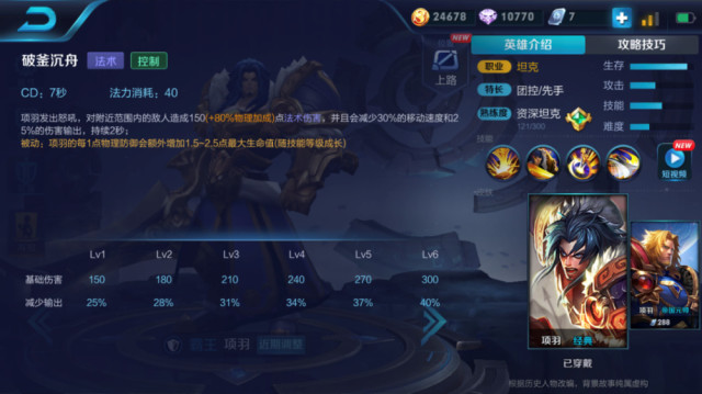 项羽作为一名坦克英雄,拥有强制性的位移控制技能,不管事团战先手还是保护后排都是很好的人选。但是伤害太低一直是广大小伙伴的一个心结王者荣耀项羽王者荣耀项羽,有点对不起西楚霸王的名号。所以天美决定加强项羽的攻击力让项羽有肉有输出。