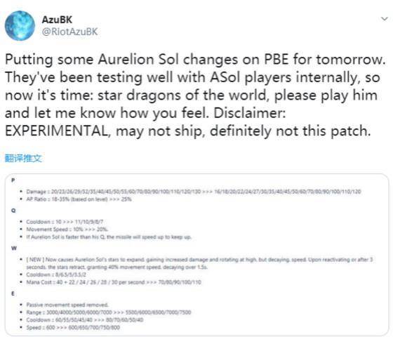 不过就在今天,拳头设计师AzuBK表示对于铸星龙王的改动明天就要上线测试服了!
