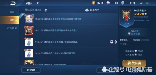 首先,战队系统就跟当年CF的战队系统模式一样,一些技术比较好的大神组建战队,招收同样技术好的大神一起来打排位,在游戏中建立友谊关系加入战队,这就好比是一个圈子,同样兴趣爱好的朋友们在一起打游戏开黑,这样更容易赢得比赛,一起带兄弟们上分,虽然说同样5黑不用一个战队也行,那么我们为什么要加入一个战队呢?我们来看下。