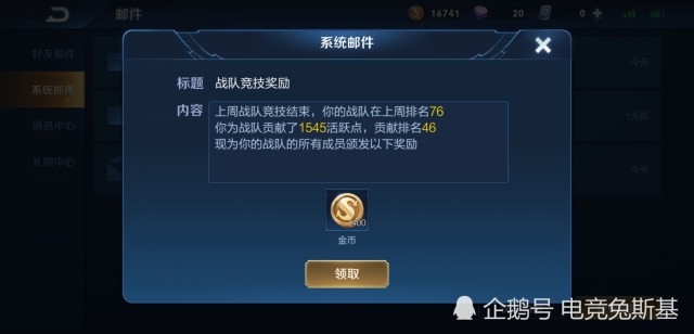 加入战队每周都会多送你好多金币!(金币金额是根据你所在战队的全服排名情况而定)这样得到的金币奖励就可以最少让你少打5把游戏,何乐而不为呢,反正是白送的,加入战队还能为团队出力,意思就是你也是一个有组织的人了!想想都会爽很多。