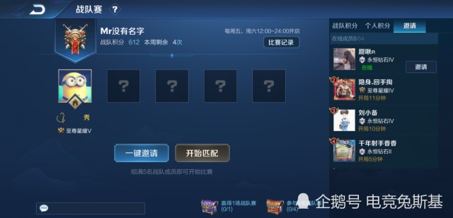 另外就是你可以打战队赛!同样是5黑,这个级别可就不一样了,两个实力相当的战队切磋一把加入战队,远比你随便玩10把都有意思的多,你方登罢我上场,我方攻完你方攻!相同实力的PK靠的就是心态,非常非常容易翻盘,玩的就是心跳!好不刺激。