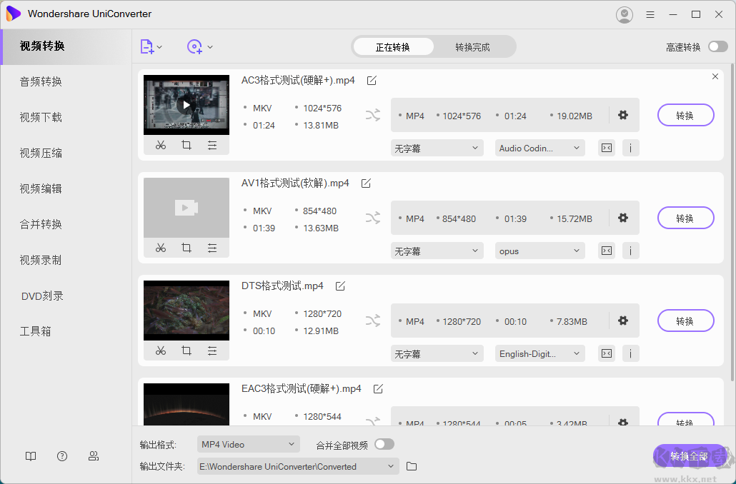 万兴万能视频格式转换器(Wondershare UniConverter)也叫万兴优转,是一款非常好用且强大的视频格式转换器,拥有视频转换、音频转换、视频转换、视频压缩、合并转换、视频录制、DVD等等功能!万兴是知名的软件公司,这款软件是国际版~使用用户非常多,KK下载站提供给大家的是绿色激活版,所有功能免费使用。